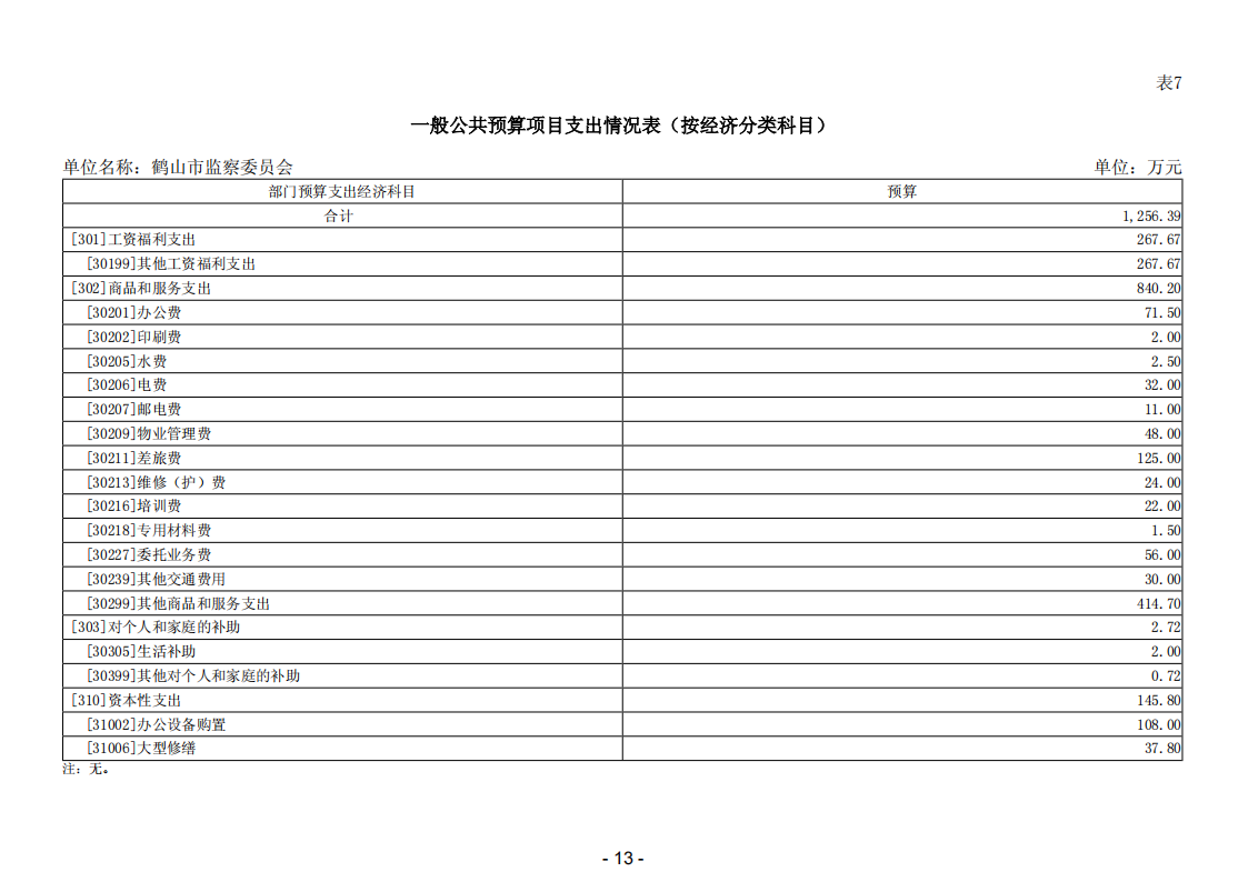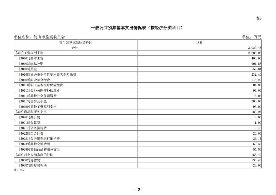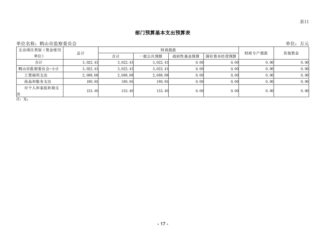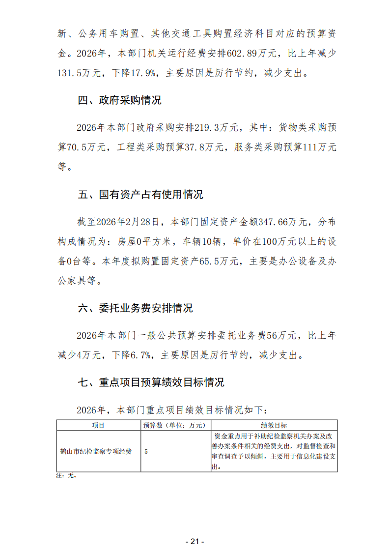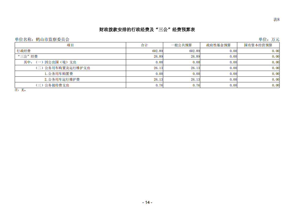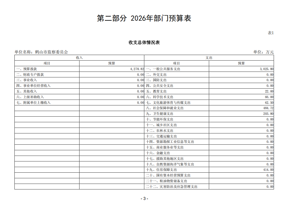 2026年鹤山市监察委员会部门预算