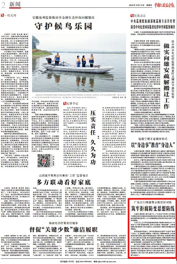 《中国纪检监察报》报道:广东江门增强警示教育针对性 筑牢拒腐防变思想防线