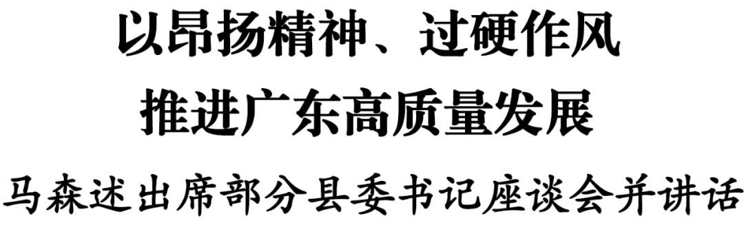 马森述指出,广东是改革开放的排头兵、先行地、实验区,习近平总书记对广东寄予厚望,赋予在推进中国式现代化建设中走在前列的使命任务。郡县治,天下安。县委书记是党执政兴国的“一线总指挥”,其履职成效,直接关系到党中央路线方针政策和省委决策部署能否贯彻落实到位,党的执政根基是否稳固,要深入学习贯彻习近平新时代中国特色社会主义思想,坚决落实习近平总书记视察广东系列重要讲话、重要指示精神,增强使命感、荣誉感、责任感,坚持以全面从严治党为根本保障,进一步振奋精神,增强改革创新劲头,以昂扬精神、过硬作风推进广东高质量发展。