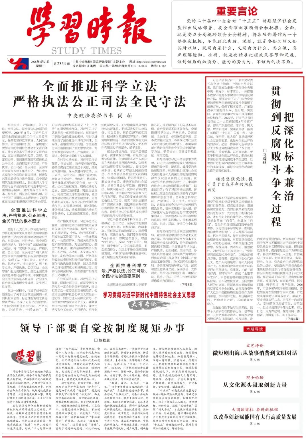 《学习时报》2026年1月21日头版刊发广东省委常委、省纪委书记,省监委主任马森述的署名文章《把深化标本兼治贯彻到反腐败斗争全过程》,现予以全文转载。